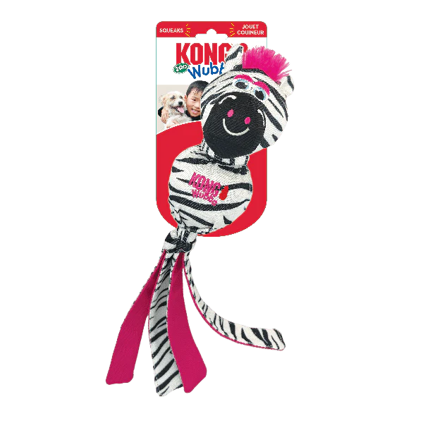 KONG Wubba Zoo turns playtime into an instinct-satisfying shaking safari with exotic animal pals whose long floppy tails make thrashing even more exciting. Squeaker in the body prolongs play. Reinforced material delivers long-lasting fetching, tugging and shaking fun with minimal stuffing for less mess. Ideal for interactive or solo adventures.