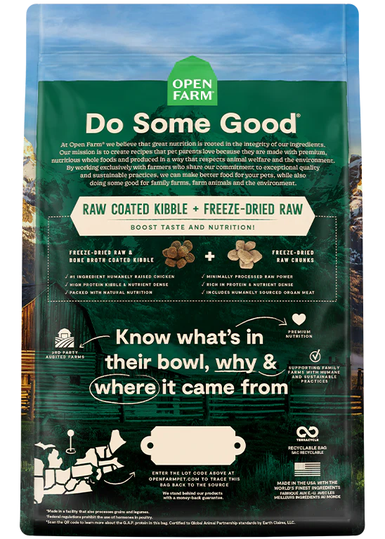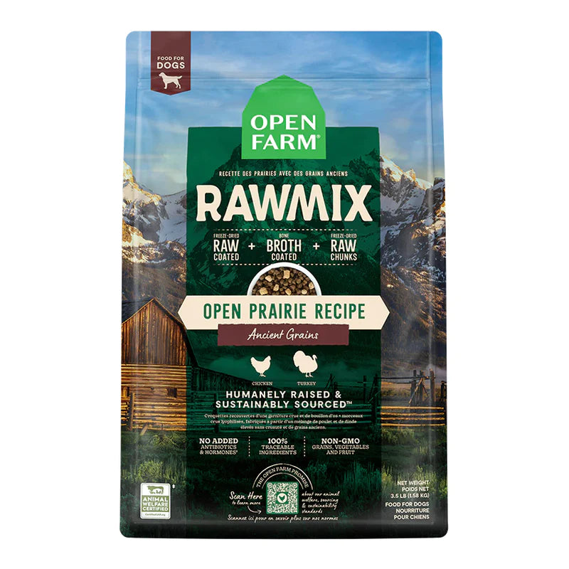 This RawMix recipe features our protein-packed kibble covered in a nutritious bone broth and freeze dried raw coating, with chicken & turkey freeze dried raw chunks mixed in for a terrific taste. Crafted with a blend of 100% animal welfare certified chicken and turkey, this flavorful recipe includes nutrient-dense meat, organ, and bone with non-GMO grains, fruits, and veggies.