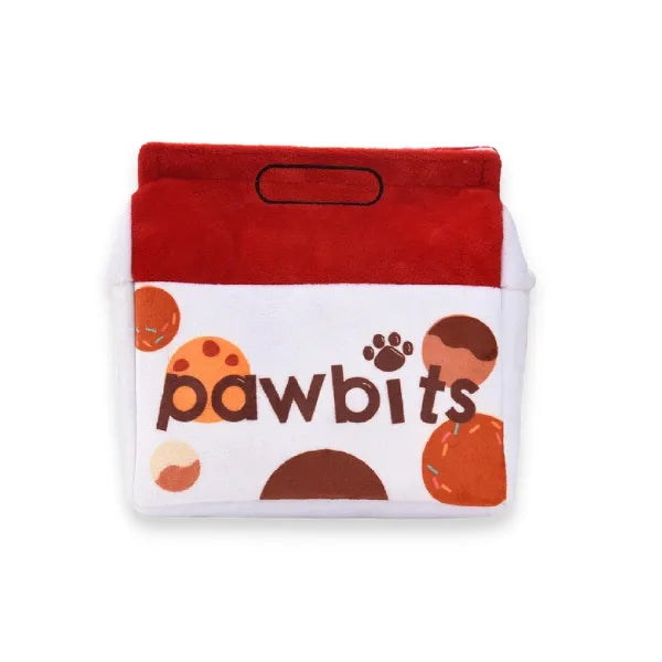 HugSmart Pooch Sweets Pawbits is a plush bag filled with three round bite-sized donuts ready for hours of interactive playtime with your best friend. This unique toy is made with multiple layers for durability and encourages your dog to try and get the three round toys out of the top velcro closure of the crinkly bag.