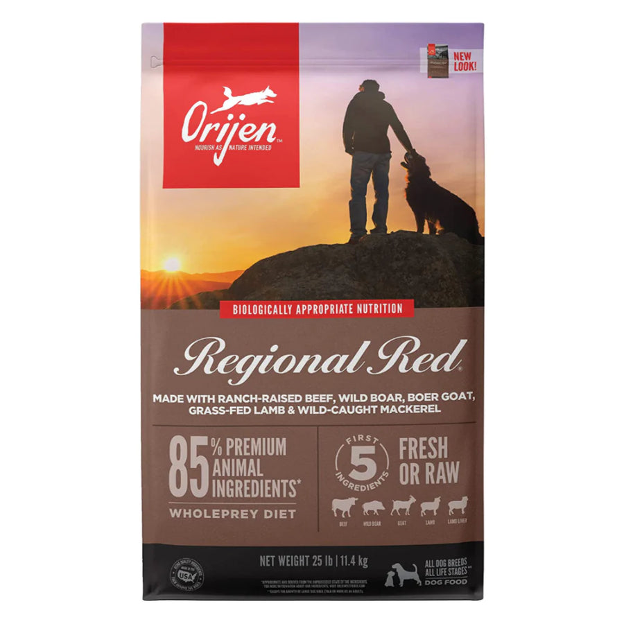 Help your dog thrive with the power of protein-rich recipes that provide peak nourishment. Dogs are ancestral carnivores, so they need a Biologically Appropriate diet rich and varied in whole animal ingredients. ORIJEN® Regional Red diet is packed with 85%1 quality animal ingredients like raw2 beef, wild boar, bison, lamb and pork. Packed with WholePrey animal ingredients like organs and bone, ORIJEN food is made with the most nutrient-dense, succulent parts of the prey to deliver the nutrition dogs need. The result is a diet for your canine companion that is beyond comparison.